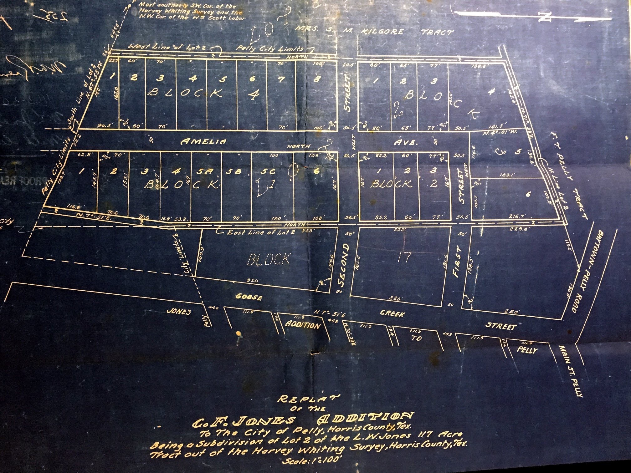 The next to last neighborhood that was developed in Pelly was the CF Jones Addition in the late 1930s. Part of the original Harvey Whiting survey. 117 acres were detached from LW Jones' property to form this neighborhood. West of current day Lee Drive and south of West Main.