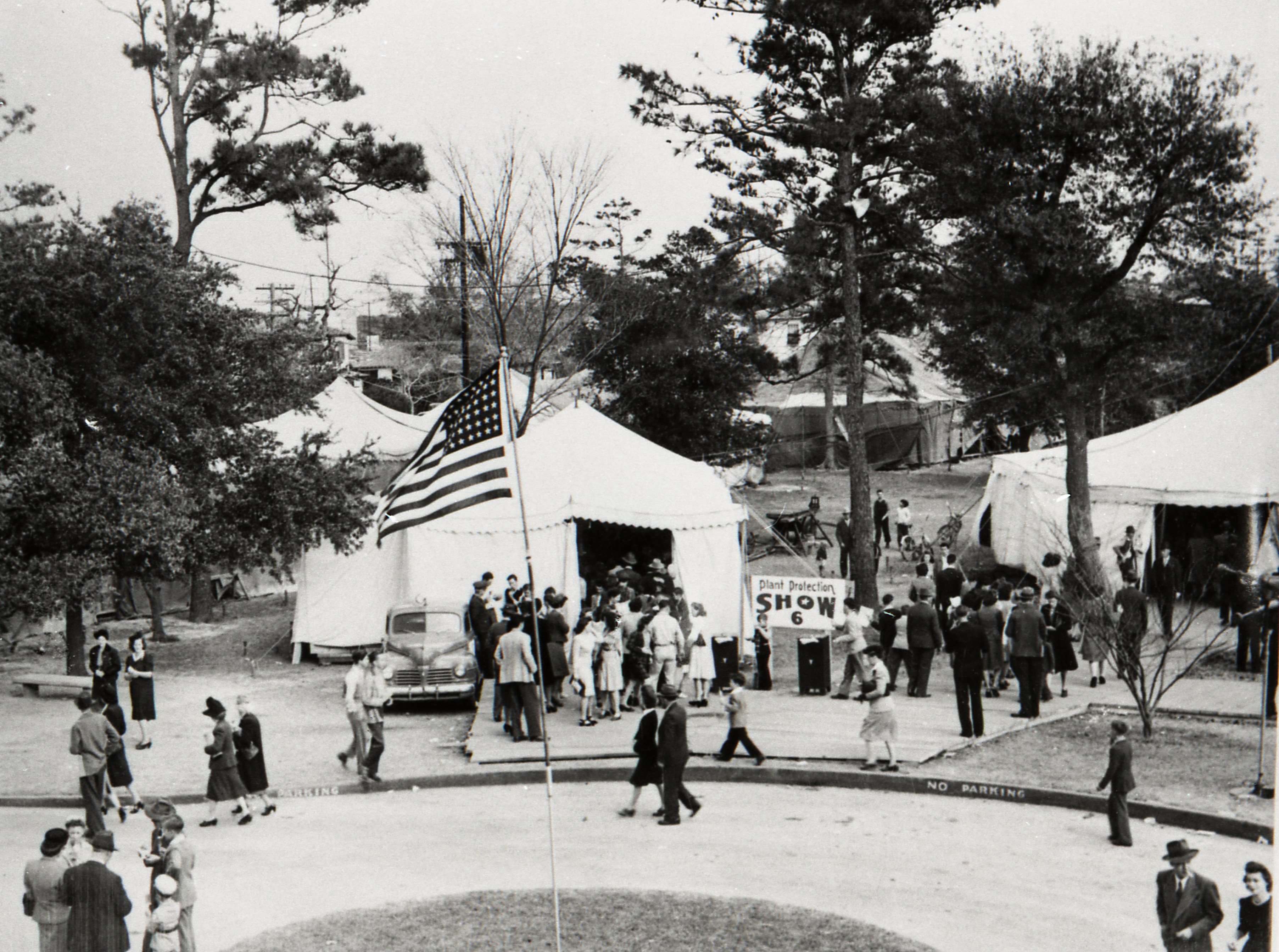 The exhibit area as seen from the Community building on Billion Gallon Day at Humble Oil & Refining Company.