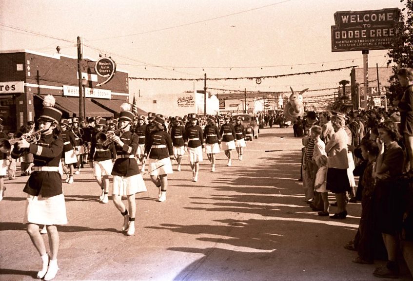 Christmas parade down Texas Avenue, Goose Creek, Texas, 1939.
