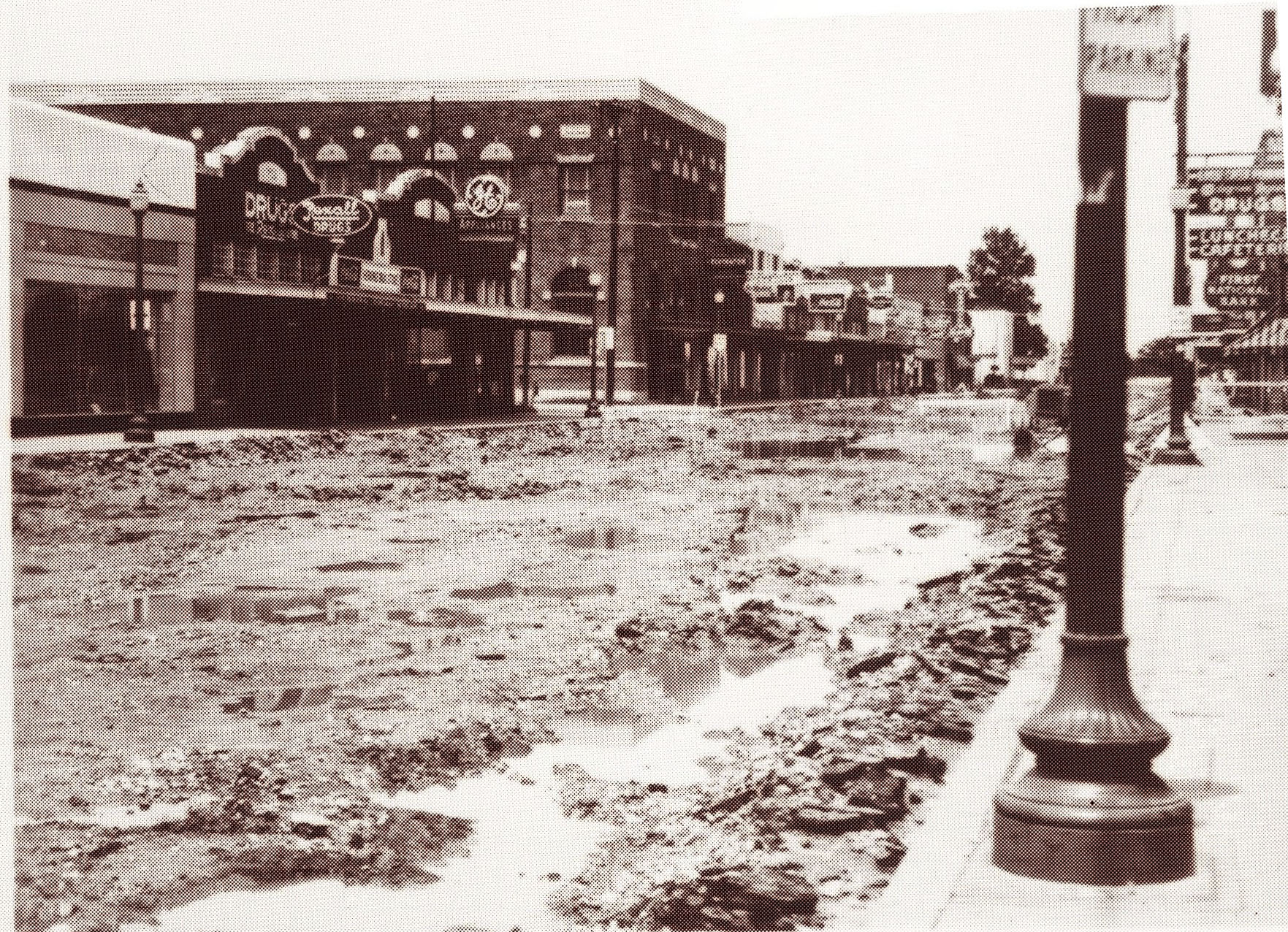 This is a view of the 100 block of West Texas Avenue in the late 1930s or early 1940s. The photo was taken before the street paving project was completed.