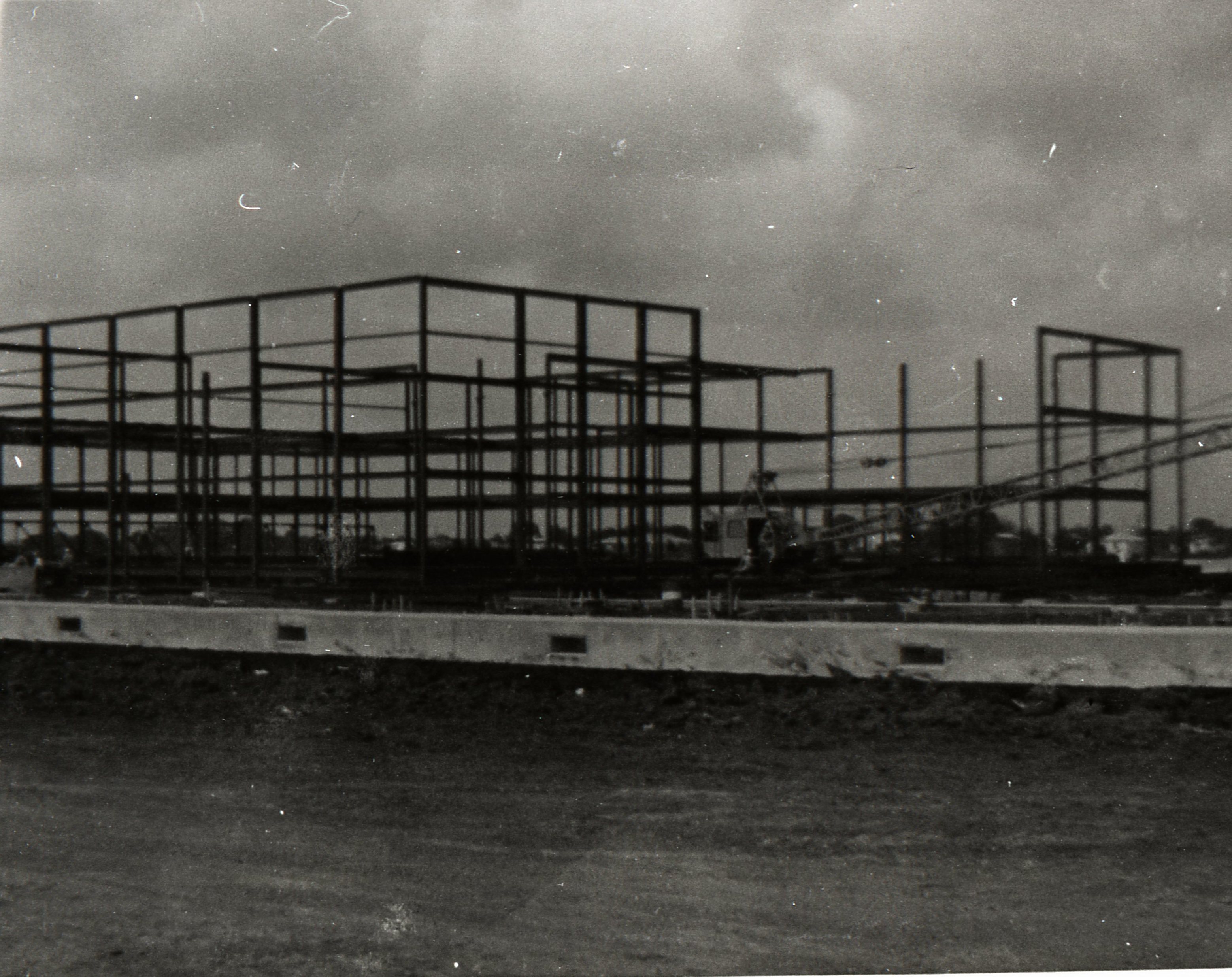 Ross S. Sterling High School under construction, 1966; A 1966 shot of the steelwork of Ross S. Sterling High School as it was under construction.