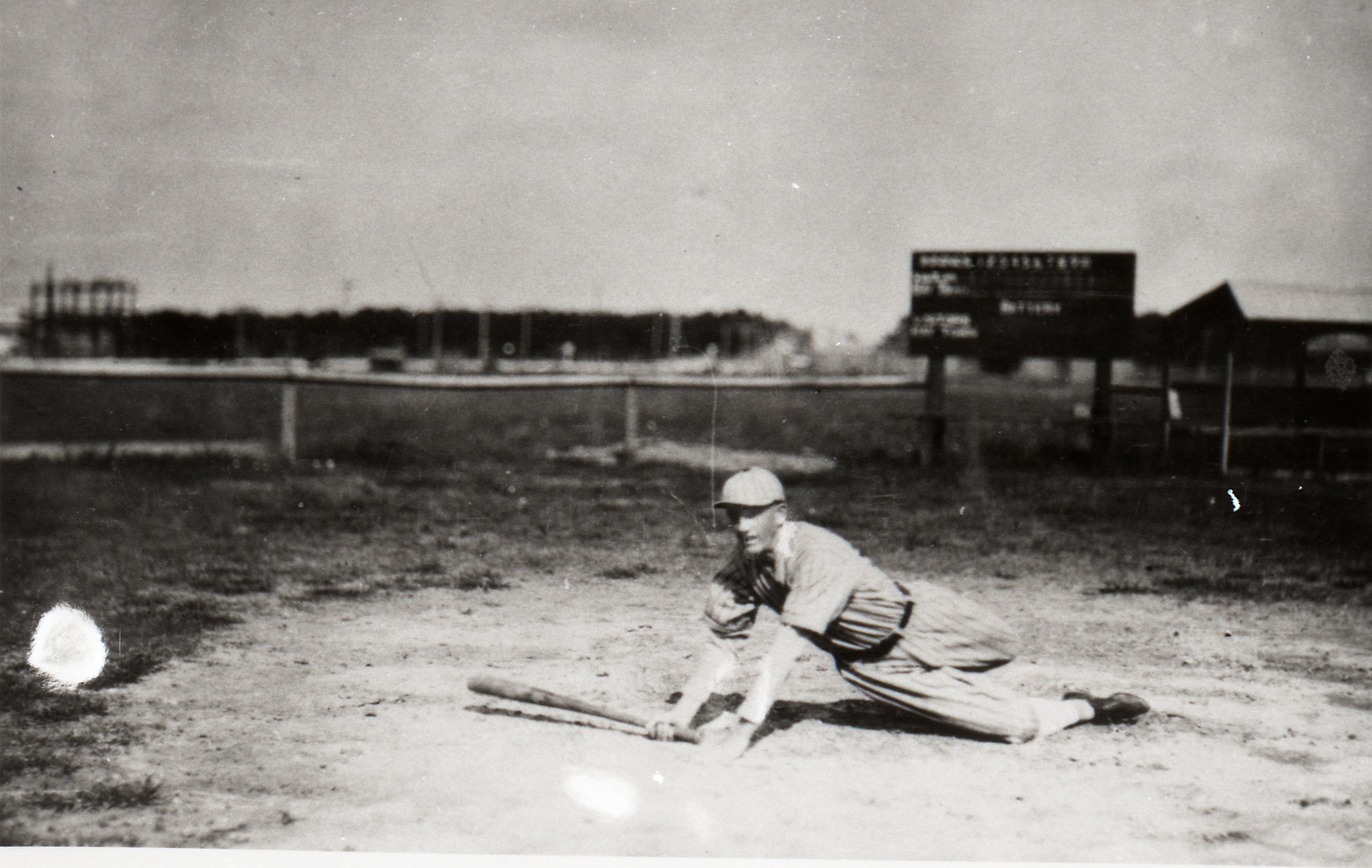 Willie Cox, 1920; Cox, a Humble Oiler, at the plate on old baseball diamond near Corral Gate.