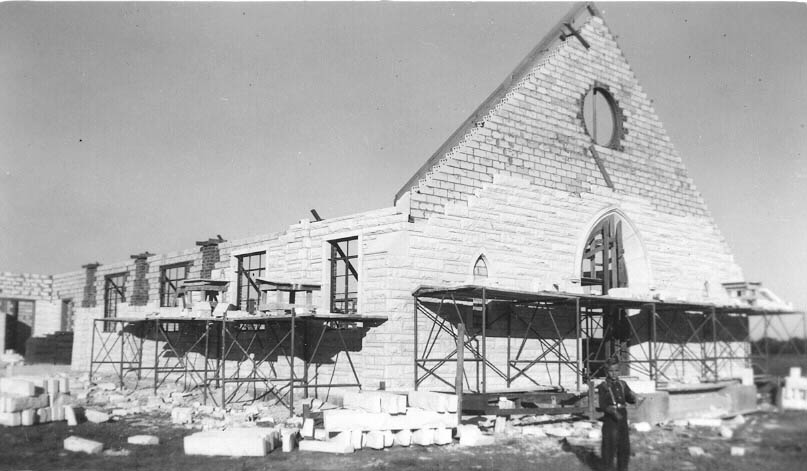 Reconstruction of First Methodist Church in 1949, after a hurricane knocked down the sanctuary walls which were under construction at the time. Photo contributed by Robert and Carolyn Francis in 2016.