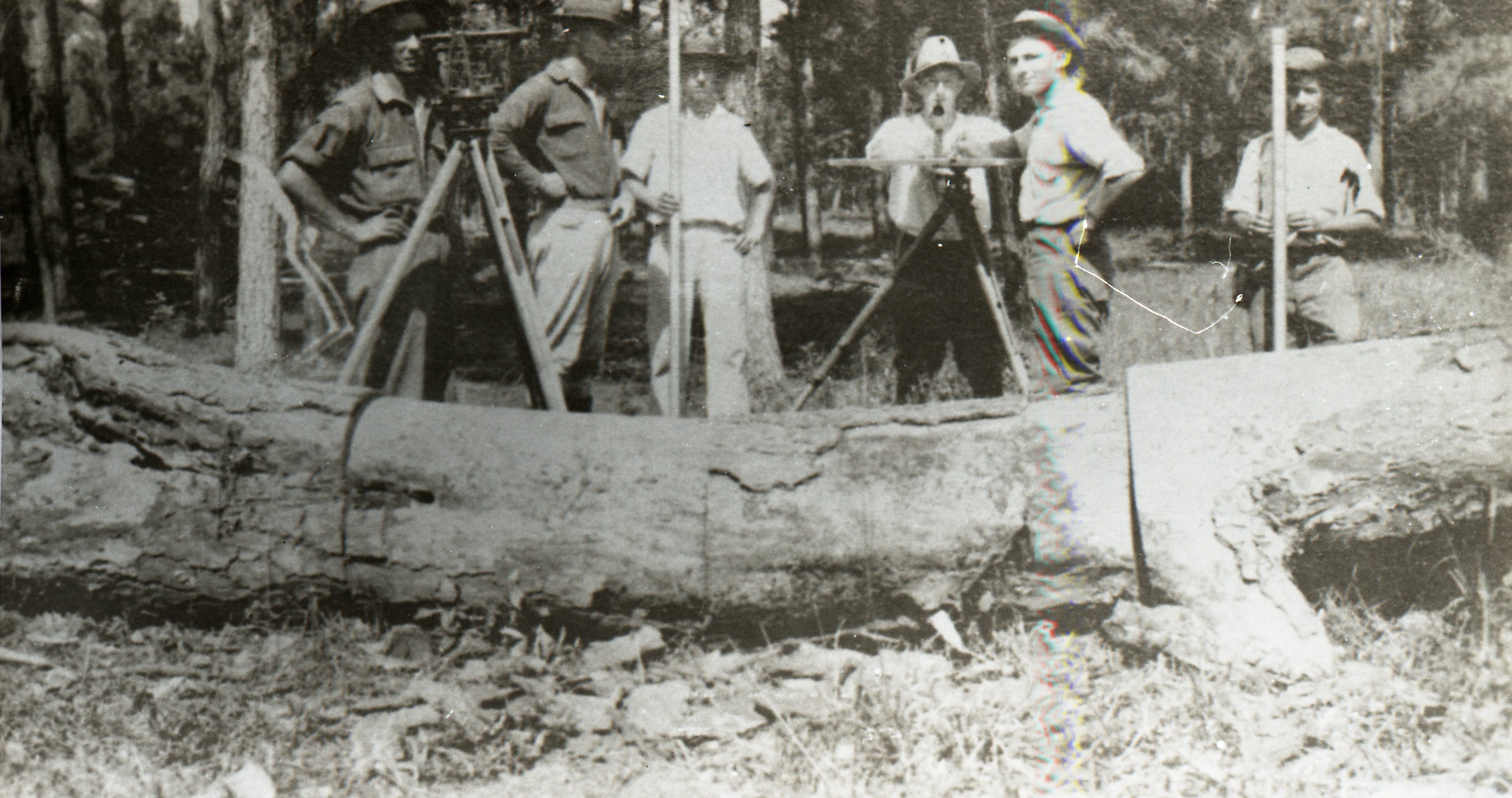 Humble engineers at work in 1919; Humble engineering party at work in 1919 as the area is being cleared for construction of the refinery.
