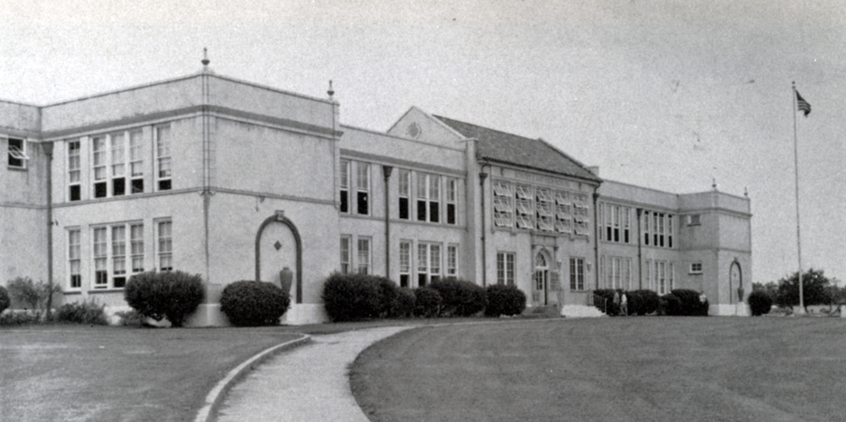 Robert E. Lee High School, circa 1960. The front of the main building of Robert E. Lee High School, located at 1809 Market Street.