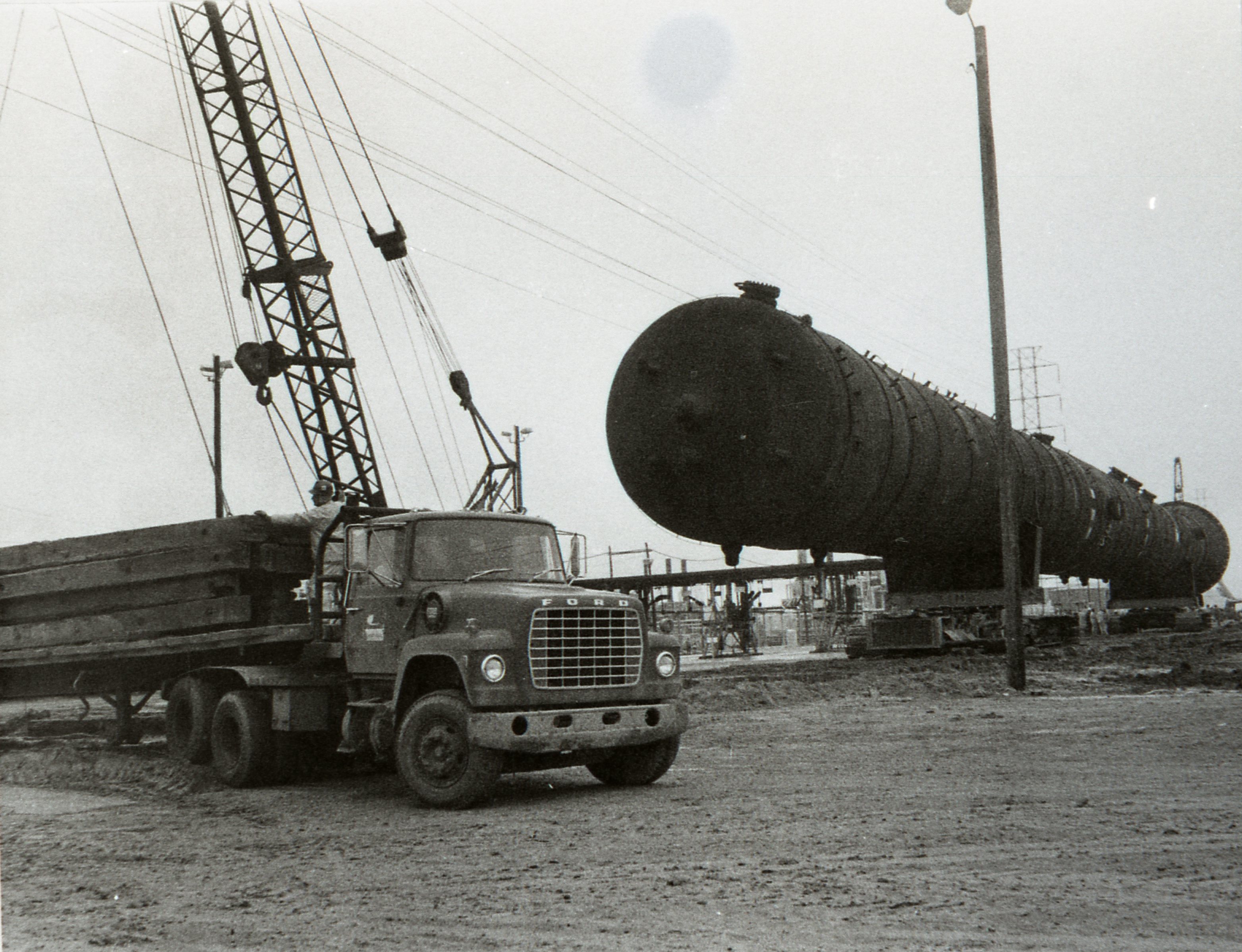 This is the biggest fractionating tower ever built. The pictures are in order that the tower was raised.