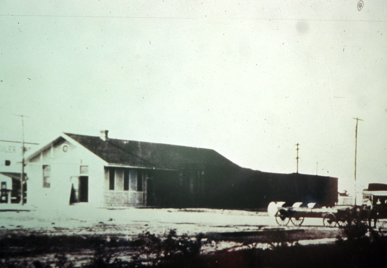 View of the Houston and Goose Creek Auto-Line taken in 1923. Commonly called the “jitney” service, Webb Greer started the H&G C Auto-Line in 1919. It was much later to become the Bayshore Bus Company. Rates for the jitney service to Houston were $2.50 one-way or $5 round trip. The company advertised the trip to Houston would take only three hours when the weather was nice or half a day when muddy. At this time it was necessary to drive to Crosby or wait for the ferry at Lynchburg to make the trip to Houston. In the background over the hood of the car is Baytown’s first public outdoor telephone.